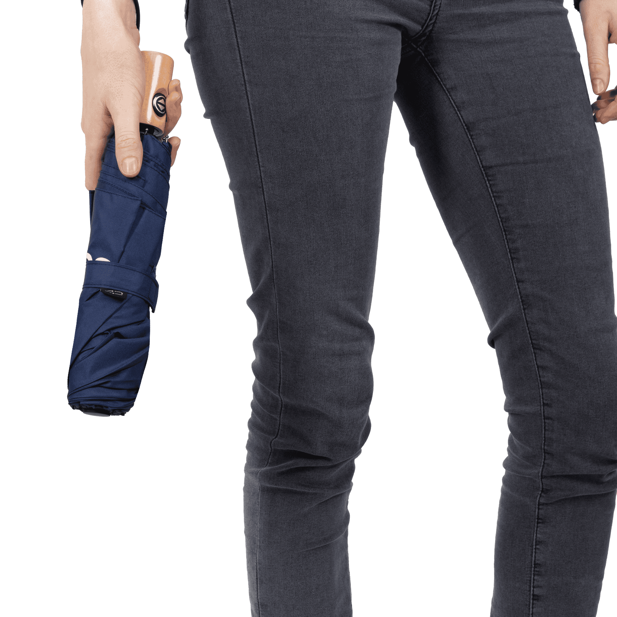 Foldable flexible umbrella with automatic opening and closing function. Supplied with a polyester pongee case of RPET 190T. This umbrella also features a stainless steel frame and handle, wooden handle, elastic carrying loop and velcro closure. RCS certified.